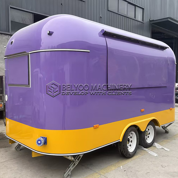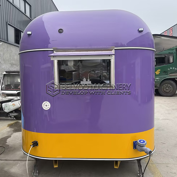 In the ever-changing food service industry, standing out is crucial. This 13ft purple and yellow airstream food trailer is unforgettable with its striking, bold, and vibrant color scheme, as well as its stylish design that combines visual appeal with high practicality. It blends nostalgic Airstream classic American style with modern construction, and its sturdy frame and premium materials ensure durability and reliability on the go.