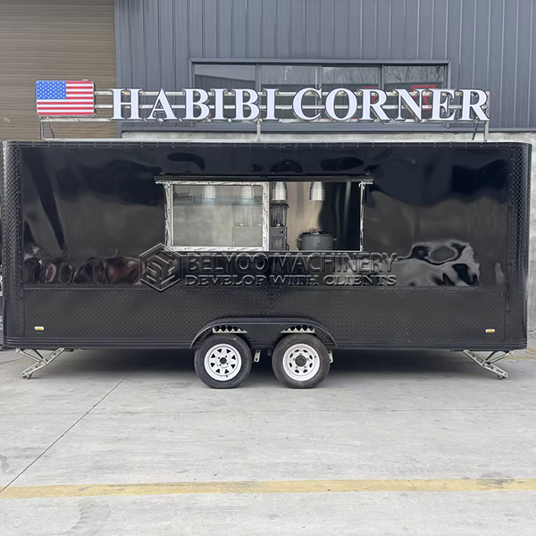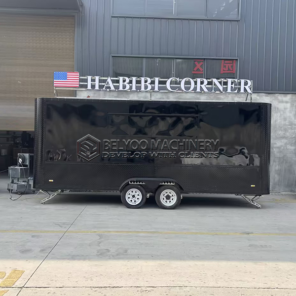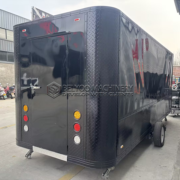 The 15ft black square food trailer with LED light is a top-tier mobile kitchen that seamlessly blends durability, functionality, and style, making it an ideal solution for modern food vendors and caterers aiming to expand their culinary business on the road. With its sleek black exterior and robust construction, this trailer not only makes a striking impression but also offers ample space within its 15-foot length for a fully equipped kitchen, ensuring you’re well-prepared to handle a variety of dishes.